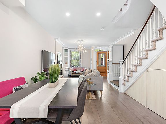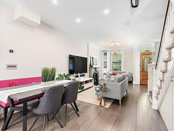 This renovated four-story two-family brownstone townhouse is located on one of uptown Hoboken's most coveted tree-lined blocks. This home consists of an owner's triplex with three bedrooms, two bathrooms, and an office over a garden level one bedroom one bath rental that can provide great income or easily be converted back into a single-family home. Immediately apparent on the parlor floor of this turn-of-the-century home is the seamless juxtaposition of modern design and the historical details. This large open concept living area is perfect for entertaining and encompasses a seating area with an original marble mantel, a comfortable dining area, and a large open kitchen that leads to a beautifully landscaped garden. The open kitchen incorporates a large pane glass window that overlooks the garden and features custom cabinetry by Veneta Cucine, a perfectly situated island with a pink quartzite countertop, custom lighting, and Miele appliances. Accessed from the kitchen, the private, wonderfully landscaped garden features limestone pavers and mature plantings. The second floor has two large bedrooms, one of which is used as a den, and both feature built-in bookcases. The quaint second-floor bathroom features a Jacuzzi tub and glass subway tile. The top floor has a large master bedroom, a timeless master bath with a double vanity with marble countertops, and a large frameless glass shower. The top floor comes complete with a laundry closet and a separate home office with built-in cabinetry. The garden level rental has its own separate entrance, a separate bedroom and a full kitchen as well as washer and dryer in unit. 939 has several modern conveniences, including HVAC, Nest thermostats and Ethernet wiring. The home is conveniently located near Hoboken's 14th Street NY Waterway Ferry and one block from Washington Street's boutique shopping, restaurants and the NJ Transit bus route for access to Manhattan's Port Authority bus terminal in approximately fifteen minutes. Rental parking is available 1 block away.