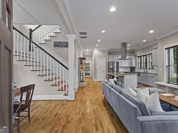 Charming 4-bedroom, 3-bathroom home perfectly situated on a corner lot in the heart of beloved Grant Park! With its quintessential front porch, flat fenced front yard, and a screened porch out back, this home blends classic neighborhood character with modern convenience. Step inside to an open floor plan that's made for today's lifestyle; an oversized kitchen flows seamlessly into the fireside living room and dining area, ideal for entertaining. The main level offers two spacious bedrooms and a full bath, perfect for guests and/or a home office. Upstairs, you'll find the primary suite with a walk-in closet and private bath, plus a convenient laundry room and an additional bedroom and full bath. A 2-car garage is rare for the area, while the newer HVAC and water heater ensure peace of mind. This location is unmatched! Walkable to neighborhood favorites like the Grant Park Farmer's Market, Ollie's Market and Ormond Grant Playground, and just minutes from the BeltLine! Zoned for sought-after Parkside Elementary. Ample attic storage. Don't miss this Grant Park treasure! Several photos in this listing are virtually staged.