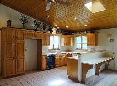 Country Living & City Conveniences! Picture perfect 1.2ac treed setting in quality neighborhood encircles this newer constructed open layout ranch residence embellished with rich rustic appointments, woodlined multifaceted ceilings, & soaring skylit drenched rooms. Abundant oak cabinetry in airy ceramic-lined kitchen, floor-to-ceiling log fp/wd burner accents expansive greatrm, maintenance-free composite deck overlooks fenced lot & lush backdrop. Yet immediate access to interstates, schools & shops!