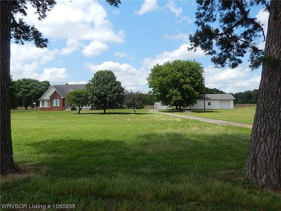 This beautiful home situated on 5 acres that afford views of the area and Mt. Magazine are sure to exceed your expectations. The interior is very open and spacious, efficiently designed and clean. The porches are covered and have plenty of room. The detached garage joins the house through a breezeway. The upstairs to the garage is finished and can be an apartment/bonus room. The two exterior buildings are HUGE with improvements/concrete floors to suit any garage mechanic/shop/woodworker... This property is truly a delight.