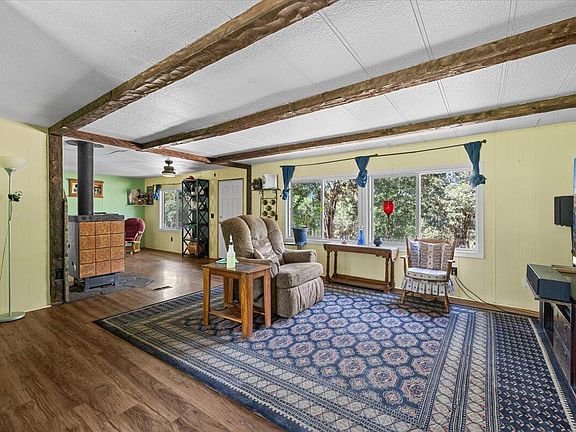 Come see this ready to live in 1975 built 3bd/2ba 1440 sqft manufactured home on 1.03 acres of EFU-zoned land! Recent upgrades include new well and power systems, offering modern reliability in a peaceful country setting. Home features a spacious 33x14 living room with beamed ceiling, large kitchen with ample storage, and a primary suite with dual closets and built-ins. Two full RV hookups with power, water, and sewer make this property ideal for guests, multi-generational living, or extra income. Detached garage, fenced backyard with fruit trees and roses. Enjoy flexible rural living with room to grow!