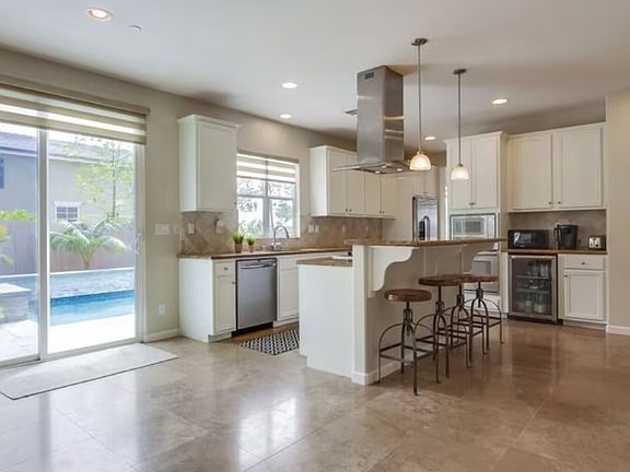 Gorgeous fully furnished turn key custom home in Cardiff with sparkling pool and spa! Beautiful open kitchen with eat up island that flows into to the family room. Adjacent dining room with french doors that open to covered patio space, a perfect space for outside dining. Spacious master suite with jetted tub, walk in closet and private deck with peek ocean views. The bedroom on the West side of the home also boasts a deck and westerly sunset views. Dual built in desks in the sunny hallway upstairs. Just minutes to beaches, shopping, restaurants and great schools nearby. Paid for solar electric panels and solar pool heating. A/C. Oversized 2 car garage w/ bonus storage cabinets and epoxy floors. Whole home soft water system and more. This privately gated newer home has all the amenities you need and provides easy living with low maintenance yard. (Can also be rented unfurnished for the right situation) Tenant pays all utilities. Owner pays for pool service and bi-weekly landscaping. 6-12 month lease option, negotiable.