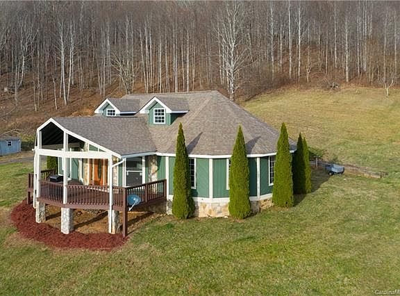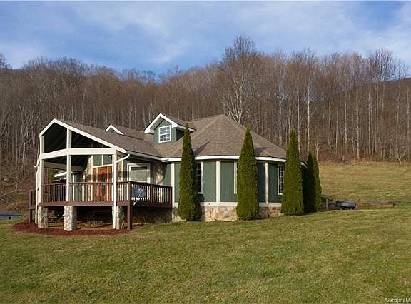 Nestled on a grassy knoll with an amazing south/south-west mountain VIEW at approximately 3,500 ft elevation! This beautiful home is filled with country charm & features 2 owner suites on the main level; Open floor plan allows easy transition from kitchen/dinning area to spacious living room with Propane Fireplace that provides instant heat and coziness. French doors open up into one of the large bedroom suites. New flooring throughout the home, newer appliance; Upstairs Bonus Room with 1/2 bath offers additional sleeping area/office or retreat room. Easy drive up to kitchen door with attached carport for easy grocery unloading, could easily be converted into a garage. Amazing Views of Mount Mitchell (highest peak east of the Mississippi River)The 2.44+/- acres offers plenty of stretching room along with a nice sized fish pond & various Fruit-trees! Wonderful year round home-Move-in Ready! Life is an Adventure & the Adventure never ends in with access to all the nature wonders of WNC