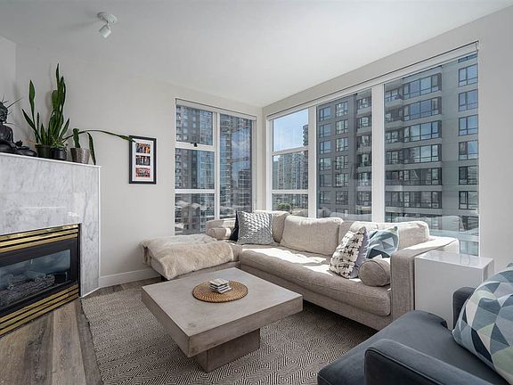 Bright and Spacious NE corner unit in the heart of Yale Town. Beautifully renovated open concept 2 bedroom, 2 bathroom plus flex. Over 900 sq.ft well laid out plan with a gas fireplace. Renovations include new flooring, new bathrooms, new kitchen, ceiling with pot lights and more. Some of the best amenities in the area, including fitness centre, indoor pool, hot tub/sauna, recreation room, garden area, concierge and guest suite. Convenient location close to all Yale Town has to offer, Costco, seawall, transit, and parks. Pet friendly and rentals allowed. Includes 1 parking and 1 storage. Call for your private appointment.