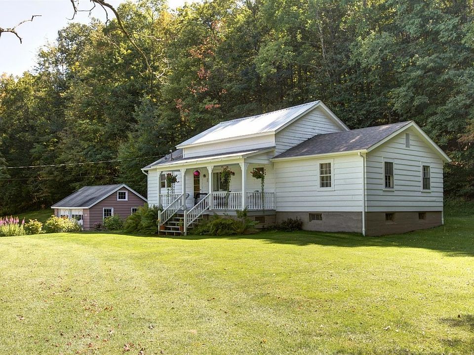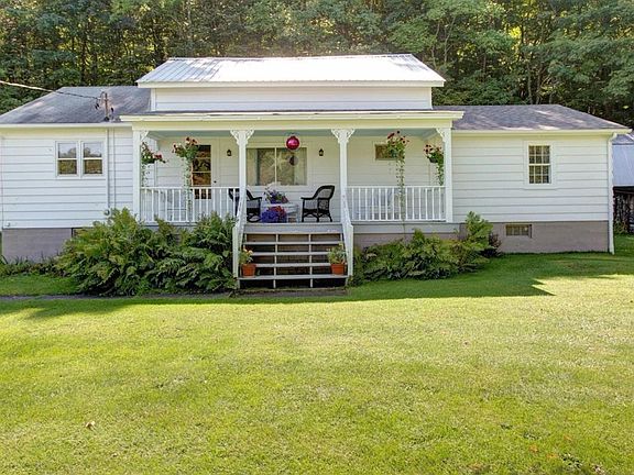 Ever dream of stepping back into yesterday and living off the land in the countryside you always dreamed of? Where you own both sides of a less traveled dead end valley road with stream side serenity and mesmerizing Catskill Mountain Views. If so your dreams have come true; 48.90 Acres in the beautiful New Kingston Valley of Delaware County. Rare opportunity, first time on market, freshly painted clapboard siding 3 bedroom, 1 bath ranch on a full walkout out basement. Detached 2 car garage sits alongside the house and an 18 x 12 miniature barn across the road provides an ideal scenic pond/stream side setting. No lack of character here, good looking oak flooring and wood work throughout, spacious and bright county style kitchen and of course the rocking chair covered porch for those lazy, summer afternoons. Looking to live off the land, maybe someday yesterday will return and the land will once again entertain the sounds of farm animals grazing the meadows. Located in the Margaretville Central School District, annual real estate taxes are $5019. Don't hesitate, early bird gets the worm, this one will not last long at the reduced asking price of $269,000.