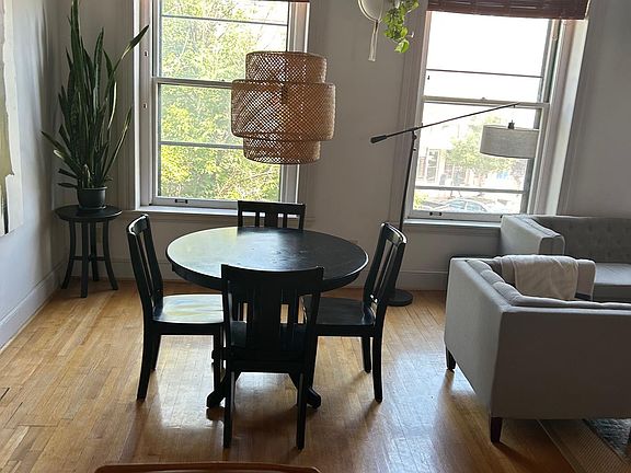 Gorgeous vintage property in prime location right on Massachusetts street. Built in the late 1800's, this apartment boasts hardwood floors, huge windows, high ceilings, and is spacious and airy with lots of light. Perfect for in-home workers, this apartment features a grand common space and a one room office with private exit. Please Note: photos include the current tenants guest bedroom that has been set up in the office space. This is not a fire-code conforming bedroom and therefore is not suitable for roommates. It cannot be used as a permanent bedroom as that would violate code. It is intended as an office space. Photos are between two tenants with different decorating styles so keep that in mind when looking at our listing images. Dozens of restaurants and shops right outside, and only a 15-minute walk from KU campus. One Private parking space available for an extra fee ($50/month) 2nd floor apartment located downtown Massachusetts street, above boutique. Amenities include private balcony, washer/dryer in-unit and dishwasher. Lots of beautiful details like built-ins, beautiful woodwork, and papered ceilings. Lease is for 12 months starting April 1st. No smoking inside unit. Pets require additional approval and additional deposit. Single parking spot available for extra fee.