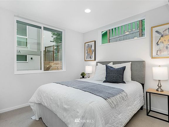 Light-filled, beautiful new construction townhomes mere minutes to Green Lake and the heart of Greenwood. Thoughtfully designed, these homes' warm, natural colors and finishes welcome you to spacious and functional floorplans with oversized windows. Enjoy outdoor living and views of the city, Mt. Rainier and Cascades from your rooftop deck, or entertain from your eat-in kitchen and open living space. This home's primary suite does not disappoint, with vaulted ceilings, walk-in closet and en-suite bath. Sleek, black stainless steel appliances, quartz countertops and Dedicated off-street parking with car charging, walk to transit and Rapid Line, and direct and easy access to I-5 and Hwy 99. Only four homes, pictures are of both models.
