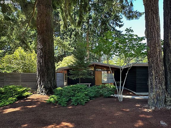 True Portland Mid-Century Modern impeccably restored with passion and reverence to the style. Built in 1954, 939 NE 114th Avenue is one of a number of smaller MCM's built reminiscent of the modern Post & Beam aesthetic of Eichler or Rummer homes in a more modest form. The vaulted, exposed beam, tongue and groove fir ceilings combined with roofline windows and open floorplan make the space live much larger than its footprint. Floor to ceiling windows in the living room blur the line between interior and exterior, opening onto private covered and uncovered landscaped patios. Zen park-like serene, outdoor private spaces surrounded by mature Douglas firs and nestled on a nearly quarter acre lot, this unique home feels like a modern cabin in a forested peaceful oasis. Upgrades include: TPO roof and fascia boards, replaced tongue and groove solid fir ceilings, copper gutters, 200amp electric service, wiring, and outlets, copper supply and main water service lines, central air conditioning, Trane furnace, Rinnai tankless hot water heater, Malm Zircon 30 wood fireplace on custom base, to-studs interior wall removals replaced with sheetrock, insulated exterior and interior walls with recycled blue jeans, 2022 exterior paint, Velux skylights, custom solid fir awning windows, solid core doors, Rejuvenation modern lighting fixtures, Baldwin hardware, garage door, fencing, hardscape and landscape. Ask your Realtor to share upgrades and amenities lists for more details. Blocks to: Gateway Breakfast House, Jet Black Coffee, Food Fight!, Portland Coffee Shop, Hazelwood Hydropark and Community Garden, and more. Open Saturday and Sunday, 1-3pm. Offers due Monday by 2pm. [Home Energy Score = 7. HES Report at https://rpt.greenbuildingregistry.com/hes/OR10218609]