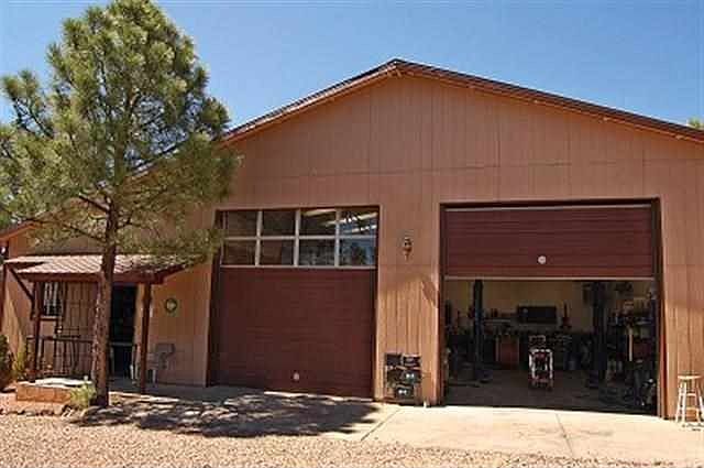 Setup as mechanic's garage, 1800 sf metal/insulated bldg., propane heat, skylights, ceiling fans, bathroom, office, 2bays plus storage room, metal shed conveys. Potential use as a B&B, quaint setting for antique artsy gift shop. Nicely treed lot with room to build more, a 2 story home would take in views of the rim country. Lots of room to store toys and tools. Also available as 4.88 ac w/ house see mls 116967. Seller to resurvey- acreage is approx. Owner may finance - let's talk.