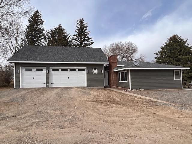 Country living surrounded by farm land and Heart Mountain/Beartooth Views. This home has been refreshingly updated with newer flooring, bathroom updates & forced AC/Heat. There are 5 bedrooms, 3 full baths, (2) Living areas on different levels. The 3 car garage has a living space above it that includes the additional family room and 5th bedroom. Outside includes mature trees, concrete patio, and the original 1600sq' Homestead house that is used for storage. There is plenty of room to park the toys and have those outside animals. Take a look today.