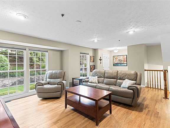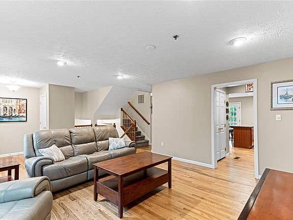 Private, move-in ready END UNIT! Spacious, updated 3 bedrooms and 2.5 baths. Glistening hardwood floors on the entire first floor. Huge eat-in kitchen with cherry cabinets & granite counters. Kitchen also provides access to the private back deck. Kitchen Island with electric, granite countertop & stools included. Lovely Butler's Pantry, also with matching cabinets & counter. Upstairs the Master bedroom boasts a walk-in closet, full bath with ceramic shower, jetted tub, & double sinks. Second floor laundry, two additional large bedrooms & a well appointed hall bath complete the upper level. Most windows have premium Top Down/Bottom Up blinds. Brand new carpet is in all upper bedrooms, hall & stairs. The lower level features a finished walk out basement with a second entry & access to the 2 car integral garage & extra outdoor space. HOA covers: ROOF, garbage, recycling, grass, landscaping, mulch, & snow removal from common areas. This home sparkles from entry to exit. Move in and enjoy!