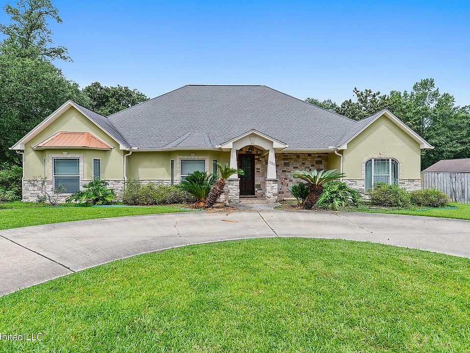 Move into this exquisite corner-lot home built in the rated ''A'' Biloxi School District! This home has a full bathroom for every bedroom, new carpet in the living room, main bedroom and guest bedroom on the north side . The master bedroom has trey ceilings. Work from home in your peaceful office with brick floors. This home has an open plan, and large windows for lots of light. During your tour, be sure to observe all of the beautiful lighting in this magestic home. It has truly a chef's kitchen with a huge beautiful island for preparing your meals, granite countertops, lots of Gorgeous soft-close cabinets, an eat in kitchen, NEW Built in Oven and Microwave and a formal dining room, walk-in closets and many more amenities. The 2-car garage is located on the side of the home. There is also a place to park your boat! The backyard patio has ceiling fans and is covered for peaceful gatherings or just enjoying breakfast/dinner outdoors. Added bonuses include your own Generac Generator in the event you lose power and a grill for your outdoor meals and 2 tankless water heaters. There are no HOA fees and no flood insurance required. It is a must see! Don't let this one get away. Seller will pay $5,000.00 in Concession for closing cost and prepaids.