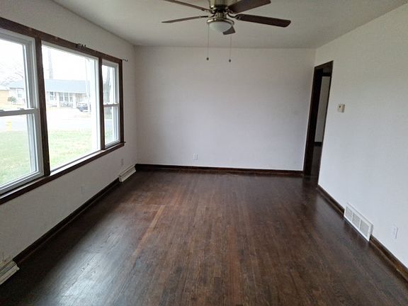 This house is located in central Olathe, right next to Frisco Lake, in the neighborhood of Ridgeview West. Direct access to Old 56 and I-35 Highways. Large front room as you are walking in, built-in shelving to the right of the front door. 3 bedrooms, 1.5 bathrooms, and original hardwoods throughout. Kitchen features plenty of built in cabinet storage, as well as a stove, dishwasher, and refrigerator. Ceiling fans in every room, and lots of natural light. Fenced in backyard with a shed, on top of a corner lot. Garage provides plenty of storage space, and car space, as well as washer/dryer hookups.