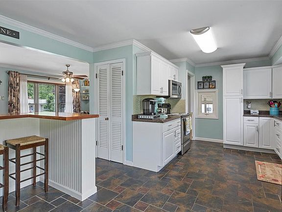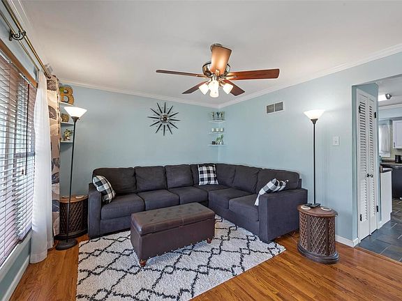 Darling ranch style home in the heart of St. Charles. Close to shopping, dining, downtown Main Street & Lindenwood University. This super cute & updated home is light, bright & airy. Features include wood and tile flooring, 2 generous size bedrooms and a spa like full bathroom. Living room features wood flooring and opens to the kitchen / dining room. The built in bar area makes entertaining easy and creates a nice open flow. Beautiful kitchen with white cabinetry and plenty of counter space. This open concept layout and on trend updates are sure to please! Other features include white 6 panel doors, crown molding through out main level, & ceiling fans. Large fenced yard with spacious patio, and storage shed for your lawn equipment. Covered off street parking.