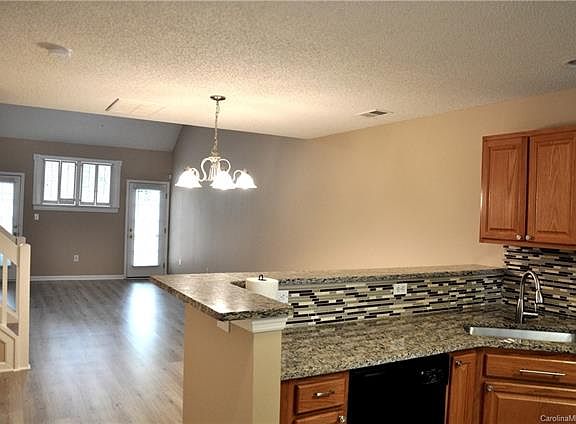 WOW! New flooring, new carpeting, new paint and new roof make this townhome pop! Impressive Kitchen has an amazing amount of granite counters and tons of cabinets. Eat in the dining area or at the granite breakfast bar. Spacious Great Room for entertaining, opens to the private, fenced patio. Master down, with walk-in closet and large 2nd closet. Secondary bedrooms have ceiling fans and large closets. 2" plantation blinds throughout. The loft makes a great area for an office, work-out space, separate TV/ computer area, etc. Ample storage space in the garage and the upstairs utility room. Pineville Forest is a great-looking complex, with mature landscaping and inviting pool, in a quiet yet convenient location. Adjacent to Pineville Forest is wonderful Pineville Lake Park / Belle Johnson Community Center, with a lake, pathways, playgrounds, dog park, covered shelters and concert stage. Or take a walk in the other direction to quaint downtown Pineville's shops, restaurants & bars.