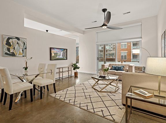 Welcome home to your dream condo, ideally located in a boutique elevator building in the heart of the coveted West Loop! This stunning two bedroom, two bathroom corner unit is the epitome of urban living. The spacious open floor plan, with 11' ceilings, polished concrete floors, and floor-to-ceiling windows, is perfect for entertaining. The beautifully updated chef's kitchen boasts white quartz counters, high-end stainless steel appliances, 42" flat panel cabinets, upgraded sink & faucet, and a large breakfast bar which opens to a living/dining room flooded in natural light from the west-facing windows overlooking your private balcony. Relax in the oversized primary bedroom, complete with two walk-in closets, a gorgeous south-facing bay window perfect for a peloton or office nook, and a spa-like en-suite bathroom featuring a double vanity with updated quartz counters, plumbing and fixtures! The generous second bedroom is perfect for a guest room or larger home office. Other features of this luxurious home include a second full bathroom with storage cabinet, an upgraded LG front-loading in-unit washer/dryer, and a Google Nest ecosystem that through the Nest app controls the smart fans located in every room, the HVAC system, and the Nest Protect smoke/carbon monoxide alarm. A huge storage unit is included in the price, and a tandem 2-car heated garage parking spot is available for an additional $35K. Prime location convenient to transit, the loop, the United Center, Mary Bartelme Park, SoHo House, Marianos, Whole Foods, and some of the best dining, shopping, and entertainment the city has to offer - not to mention the upcoming $2.9MM Madison Streetscape beautification project which will only add more value to this already incredible neighborhood. Don't miss this opportunity to own a piece of the vibrant West Loop - schedule your showing today!