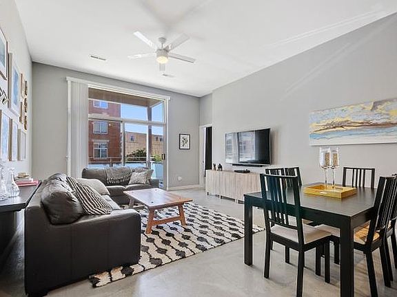 Available for June 1 move in! Looking for a stylish and spacious condo in West Loop? Look no further! This gorgeous 2 bed/2 bath loft-style corner unit is available immediately and boasts polished concrete floors and 11 ft ceilings, giving it a chic, modern feel. The open kitchen is perfect for entertaining, with a layout that seamlessly integrates with the living/dining area. Enjoy stunning north-facing floor-to-ceiling windows in the primary ensuite bedroom, along with a generously sized walk-in closet and updated bath. The second bedroom is fully enclosed for complete privacy, a rare find in this area, and features windows with both northern and western exposures. You'll love the convenience of having an indoor heated garage parking spot for additional $250 monthly. Plus, this condo is just steps away from everything West Loop has to offer, including amazing restaurants, trendy shopping, and easy access to public transportation. Don't miss out on this amazing opportunity.