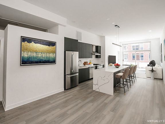 Experience luxury living in this brand-new 3-bedroom, 3-bathroom duplex penthouse in the heart of the West Loop. This stunning unit features a gourmet kitchen with an oversized quartz countertop, stainless steel appliances including a fridge with an ice maker and water dispenser and an oven with air fry settings. The spacious living area includes a large entryway, and the elegant bathrooms boast backlit mirrors and custom-cut quartz countertops, with the primary bathroom offering body jets. Enjoy additional amenities like a massive private rooftop deck, spiral staircase, custom closet designs, and in-unit washer/dryer. Central heat and air are controlled by an Ecobee thermostat, and pets (excluding pitbull breeds) are welcome. Parking for two cars and a storage locker are included. Lease terms are available with options ending in the spring/summer of 2025 or 2026, with the possibility to renew. Fees: $50 yearly dog fee per dog $300 one time pet fee per pet up to 2 pets (no cats) $750 non-refundable admin fee one time fee Parking is included, Tandem spot (2 spots) Storage locker included