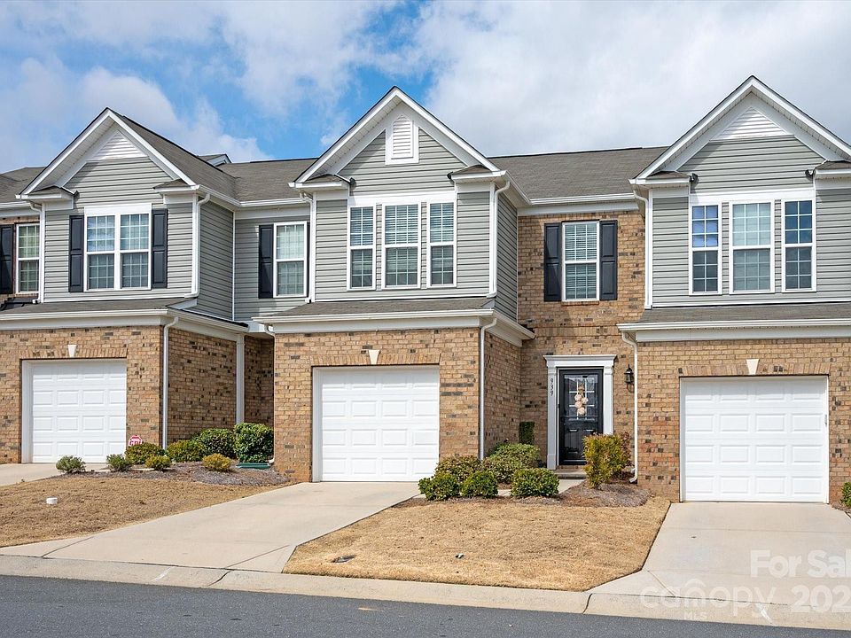 Lovely 3 Bedroom Townhome in the sought after Catawba Village gated community in Fort Mill, SC. One of the most desired open floor plans and also a single car garage. Stepping inside you are greeted with a spacious great room, upgraded kitchen with 42" cabinets,Luna Pearl granite,stylish white tile backslash & Whirlpool stainless appliances with gas stove/cooktop. The upgraded kitchen includes extension drawer guides w/ quiet closing mechanism, dovetail drawers, self-closing door hinges,roll out trays, & integrated waste basket. Main flooring upgrade to Oyster Oak LVP flooring & accent wall.Upstairs features a spacious owner's suite, owner's bath w/upgraded dual vanity sink w/ Iced White quartz top and sliding barn door for optimal space.Upgraded shower tile and glass door. Two other bedrooms and laundry upstairs as well. Enjoy the private lot on this unit with HOA green space beyond fence.Also an added air purification system on HVAC as well as racks in garage for additional storage.