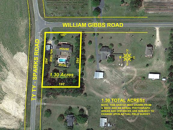 **ONLINE REAL ESTATE AUCTION - Price Determined By Competitive Bidding. Price Disclosed is Tax Card Value and is NOT a Listing Price. Online Bidding Ends Tuesday, May 13, 2025 at 2:00 PM** We are pleased to present this charming 2,540+/- SF home, nestled in the scenic countryside of Tift County, Georgia. Set on a spacious 1.3+/- acre lot, this 3-bedroom, 3-bathroom home offers the ideal blend of peaceful country living with the convenience of being just minutes from town. Step inside to an open and inviting layout that immediately feels like home. A large sunroom overlooking the patio and pool area offers versatile space - perfect for a cozy sitting area, home office, or entertainment room. The covered back patio is ideal for outdoor gatherings and relaxation, featuring a beautiful gunite swimming pool and poolside fire pit - your own private retreat. For added utility, the property includes a 40' x 24' pole barn with a 50-amp outlet, ideal for storing campers, boats, or trailers. Located just 6+/- miles from Tifton, 8+/- miles from Omega, and 16+/- miles from Sylvester, this home offers both privacy and accessibility. A rare find in Tift County - make sure you don't let this one pass you by. Register to bid today on our website!