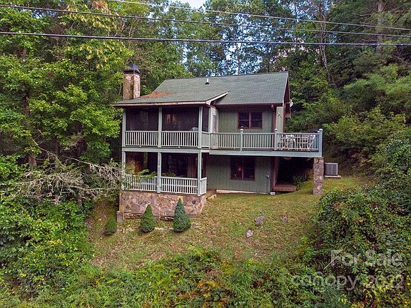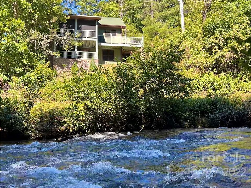 Perched above the East Fork of the French Broad River with 200' of river frontage, this lovingly cared for cabin offers ample outdoor space to enjoy the sights and sounds of one of the area's best trout streams. You will love spending time on the screened-in porch with a custom stone fireplace and unobstructed views of river shoals, rushing water, and ever-changing foliage. Beyond the porch is an open deck that fronts the river with a professional gas grill, granite prep counter, and dining table. The open-concept main floor has been professionally designed for comfort and ease with the kitchen and dining areas being an integral part of the living setting. The gourmet kitchen is fully equipped with stainless appliances and a gas range. The lower level offers 2 bedrooms, 1 full bath with custom shower, and a laundry area. The primary bedroom has exterior access to the covered lower deck offering river views. This home has a long history as a VRBO and all personal property will convey.