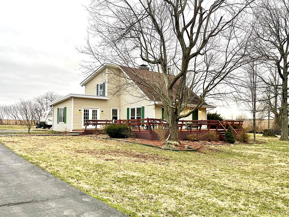 Gorgeous Country home surrounded by views of farmland on 1.8 acres. Oversized rooms, HUGE family room, remodeled kitchen, formal dining room, master suite has whirlpool tub and shower, large walk-in closet, upstairs features 2 bedrooms and a jack and jill bathroom. Detached garage, carport, workshop, wraparound deck. Fiberoptic internet and natural gas are city amenities with country living.