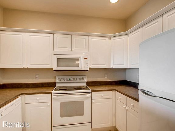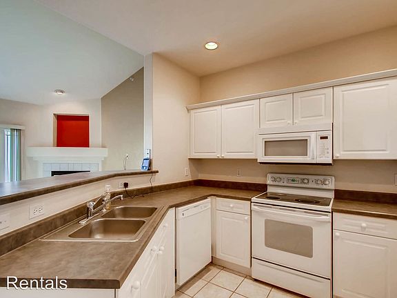 Bright and Spacious Third Floor Apartment In Littleton - When you walk in the front door of this charming apartment you'll find a tile entryway with high ceilings. To the right of the entry is a laundry room with tile floors, an area for hanging coats and a full sized washer/dryer. To the left of the entry is a hallway with a full bathroom off of it on the right with tiled floors and a tiled shower. At the end of the hallway is the secondary bedroom which is carpeted and has a spacious closet and window coverings. Off of the entryway straight ahead the apartment opens up into the kitchen, living room and dining room. The dining room area to the right has a built-in desk off of it and extra storage. The dining room connects to the kitchen ,which, has a breakfast bar and comes with a dishwasher, disposal, refrigerator, range and built-in microwave. The kitchen overlooks the spacious living room which is fully carpeted and boasts vaulted ceilings and a gas fireplace. Off the living room is a good sized balcony with beautiful views, perfect for enjoying the weather on. There is also a locked storage closet off the balcony. The master bedroom is attached to the living room and has high ceilings, carpet throughout, an attached full bathroom with a double vanity and a walk-in closet. There is also a linen closet in the master as well. This property has central air-conditioning and comes with a reserved carport parking space. Tenants are responsible for paying electricity, gas, cable and internet. No pets are allowed unfortunately. No Pets Allowed (RLNE2874898)