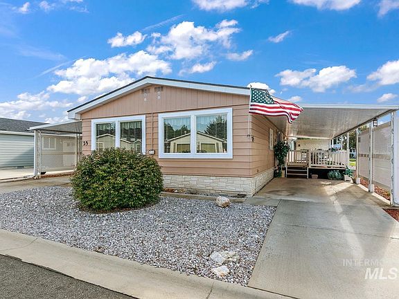 Welcome home to Aspen Creek. This home has been meticulously cared for and it shows. This is an active 55+ community with clubhouse and sparkling pool. Park hosts coffee hour, potluck dinners, monthly luncheons and game night. Clubhouse is available to rent for family activities reserved with Mgr. RV parking is also available. ZERO maintenance yard! Home has newer HVAC and water heater, large covered patio, covered entrance with handicapped ramp along with a 4 car covered carport. Large windows in home bring in tons of natural light. There is laminate flooring throughout. Formal dining room with built-in hutch. There is an eating space off the kitchen which have double doors leading to the covered patio. Utility room door opens to the patio also. Space rent is $613; includes water, sewer and trash. This is a 3 bedroom home by adding a door to the den. Buyer must be approved to live in the park prior to COE. We welcome pre-approved buyers! Conveniently close to shopping and restaurants. BBATVAI