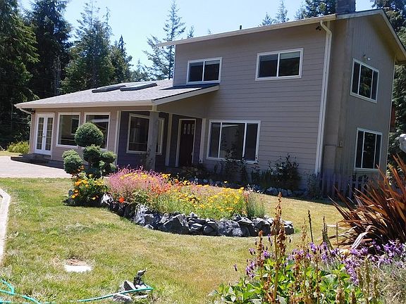 Very quiet, private wooded 3+ acres 15-minutes to town. Beautiful home with lots of natural light and forest views from every window. Myrtle wood stairs lead to upstairs master with nice bathroom and walking in closet. Everything is in tiptop shape. Lots of parking plus 2-care garage and 2-car carport.