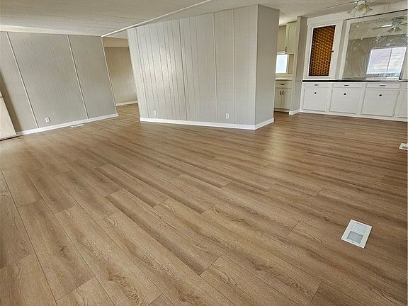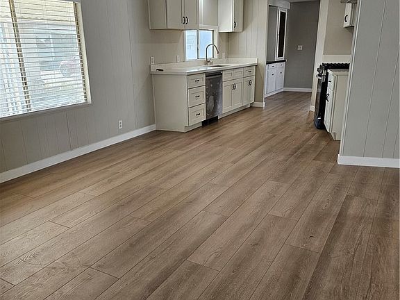 "Certainly! The beautifully remodeled 2-bedroom/2-full bath home, boasting brand new kitchen cabinets, quartz countertops, new appliances, fresh paint, new laminate flooring, and modern light fixtures, stands as a testament to meticulous attention to detail in the private 55+ community of Riverside Country Club Estates."