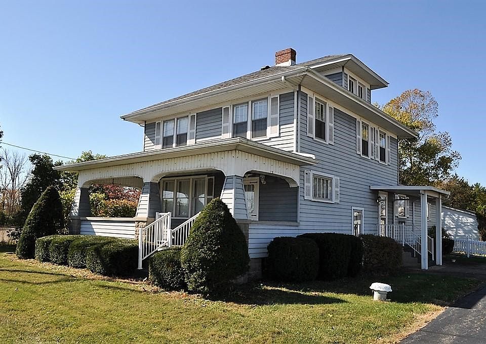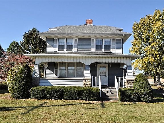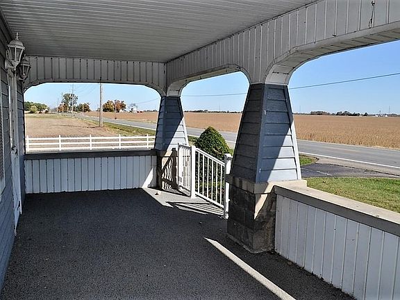 This classic 2 story farmhouse is situated on over 10 acres w/3+ detached garage (24x36), pole barn w/concrete & electric (30x24) & a poultry house (14x30)! Entering the front door of the home you'll find a spacious living room complete w/original wood trim & beautiful french doors opening to the formal dining room. The eat-in kitchen provides ample cabinet space, appliances, washer/dryer & side entry (great for groceries)! Convenient 1st floor owner suite, den/office w/deck access & full bath. The 2nd floor provides 4 BRs (1 w/attic access) & full bath. Relax on your covered front porch OR on your deck featuring a gazebo & views of your acreage. UPDATES INCLUDE: New Roof & Gutters (2016), New Water Softener (2018), New Sump Pump (2019), New Field Drainage Tiles (2019). Welcome Home!