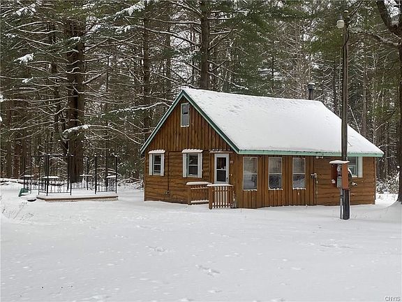 Snowmobiler's Paradise & Nature Lover's Dream! 26 acres of wooded land surrounds this home that sits back off the road for privacy. 3 sheds offer plenty of storage for toys, wood, patio furniture, lawn equipment, & much more. Gazebo for relaxing on warm summer nights or a fire on snowy evenings. Pride of ownership shows inside; home is clean & well kept. Entryway keeps boots & outdoor clothing contained. Kitchen/dining room combo has been recently updated & the wood stove adds a cozy charm. Full bathroom with large step-in shower, vanity, & toilet. Utility room with washer/dryer combo & extra storage space. 2 bedrooms upstairs. Post on stairway comes off to make moving furniture easier. Don't miss this Cozy Cottage in the Adirondack Park for year-round living or a PERFECT Getaway Camp!!