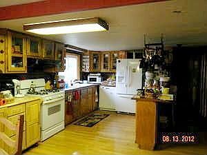 This mobile home has been updated with solid oak flooring and a very user friendly kitchen with a bar and lots of cupboards for storage.There are also new thermo pane windows throughout the home.There is a 14x60 addition on the back that could be used as another bedroom or an office area, the 14x30 living room has a beautiful gas fireplace for those cold winter nights. There are 3 out buildings. This 2.4 acres sits on a paved road surounded by woods. Call for your appointment today!