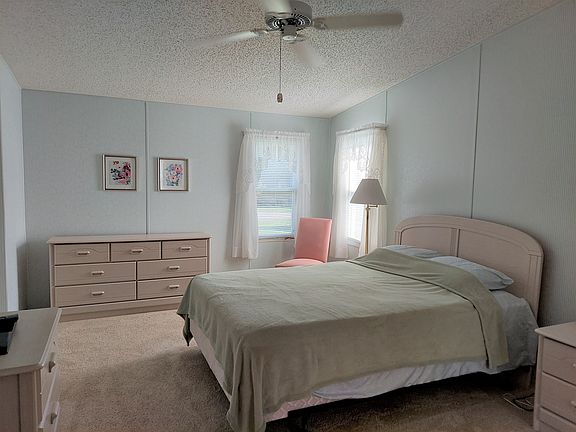 1995 Fleetwood Home for sale in beautiful Cypress Lakes. This open floor plan 2 bedroom 2 bath home has 1056 square feet of living space. There is carpet throughout the living areas, laminate in the kitchen and ceramic tile in the bathrooms, you will also find ceiling fans and thermopane windows. In the kitchen you will see tile back splash, porcelain sink, plenty of cabinet space, breakfast counter, and lots of natural light. The guest bedroom is big enough for a queen size bed and a desk and has a reach in closet, the spacious and bright master bedroom sports a walk in closet and in the master bath, a single vanity, walk in shower, & linen closet, where the full guest bathroom is the home for the washer and dryer. Outside you will find the golf cart shed with storage shelving and an extra wide driveway with carport and privacy lattice. The roof is approximately 7 yrs old and AC is 12 yrs. This home is being offered Turn-Key and with a golf cart (new batteries in 2021). Schedule your tour today!