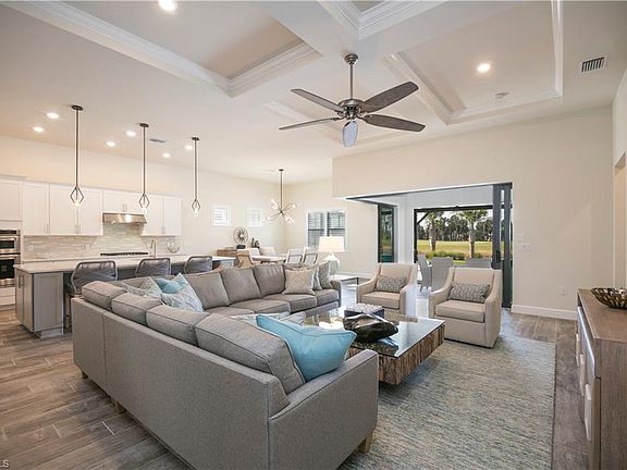 Residence offers private heated pool with pool deck overlooking the lake and golf course. With preferred northwest exposure setting and special extended screen you will enjoy the stunning sunsets here. Home offers all the latest upgrades you desire. Boasting high end flooring throughout, entire Great Room area will open to the pool area via Zero Corner sliding glass doors. Wonderful Center Island kitchen with snack bar, Quartz Counters, Wood Cabinetry with rollouts, huge Pantry, Stainless Appliances, GAS Cooking and pool heat! Completely furnished with all new furnishings and also providing cable/wifi. Six flat panel Smart Tvs . Each providing the latest Slingtv with full Blue and Orange channel lineup. Slingtv utilizes direct CAD 5 Ethernet and the fastest internet speed available - 1000 mbps. Even the outdoor pool area is equipped with a WAD to maximize the wifi signal that is generated to all exterior areas. The latest light fixtures and ceiling fans throughout, impact windows, even side tables in bedrooms provide charging stations and nightlights plus there is a 2+-Car Garage accommodating Golf Carts, small Sports Car/or Motor Cycle.