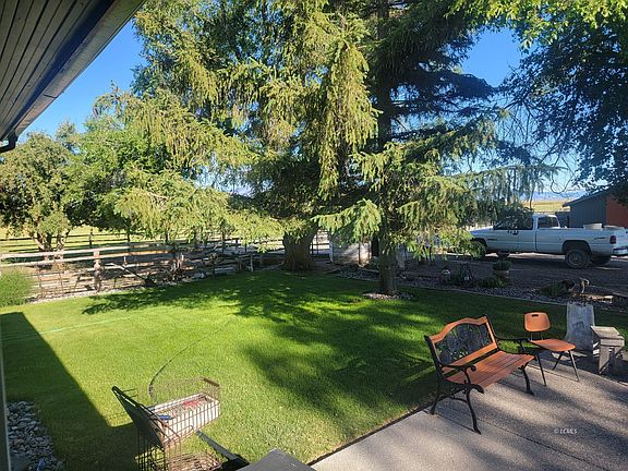 77+ Acres of Irrigated Pasture with 4 bdrm Home. 77.27 Irrigated Pasture land with 4 Bdrm Home. The 4 bdrm/2 bath home has a main floor with finished basement with separate outside entrance. Main floor plan has 1 bdrm/1 bath with living room, kitchen/family room and a sliding glass door to uncovered, but treed patio. Patio Hot Tub, views of surrounding mountains and farmland. Open Family room/kitchen/dining area. Kitchen has stove/oven, built in microwave, refrigerator and built in dishwasher included in the sale. A stand alone wood stove is located in the kitchen/family room area. Liv9ing room, Master Bdrm and Bdrm complete the upstairs living area. The basement has 3 bedrooms with closets, recently remodeled bathroom and sitting area. It also has a laundry room/storage area with outside entrance.66+-acres of irrgation rights from Lakeview Water Users. Drainage catch pond and pump recaptures used water. Barn has stables for horses, tack room, hay storage and cattle chute. Equestrian riding round pen. Also on the property is a fenced garden area, vehicle parking, farm vehicles and trailers.-