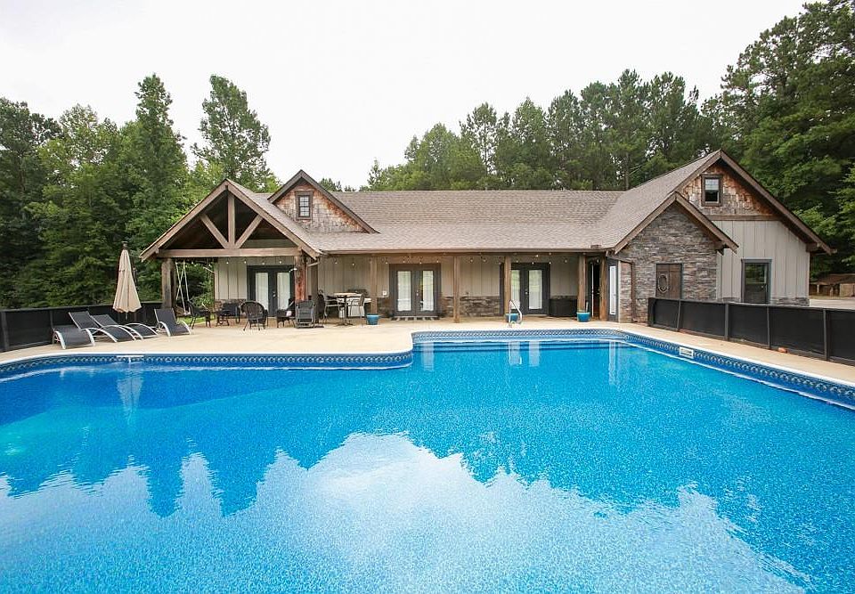 5.9 % FINANCING AVAILABLE WITH APPROVED LENDER!     Welcome to the home famously known for it's front yard pool, a one-of-a-kind gem in Haralson County. Originally designed as the pool house for a future home, this property offers a distinctive and exciting living experience, ON 15.51 ACRES!    Key Features:    Owner's Suite: The primary owner's suite is a haven of modern luxury, featuring tasteful appointments that ensure your comfort.    Open Concept: The kitchen and living room seamlessly blend into one another, creating an ideal space for hosting large gatherings and entertaining friends and family.    Additional Bedrooms: There's a unique loft area that serves as bedroom #2, and a separate room with a private entrance from the garage, perfect for a "teen suite."    Efficient Layout: The laundry and second bathroom are thoughtfully combined, maximizing efficiency and functionality.    Ample Parking: A three-car garage provides ample space for your vehicles and toys, while an additional outdoor shed carport in the rear offers more storage or parking options.    Front Pool: The front of the home boasts three French doors that open up to a massive 60,000-gallon pool, making it an ideal spot for hosting large parties with friends and family. This outside pool area also feature a bonus outdoor bathroom, complete with a shower and a toilet!    Room for Expansion: A survey is underway to separate 2.66 acres from the original tract, allowing for the future construction of the "main house" as originally planned, in the actual front yard. Then a separate 1 acre building lot will be separately deeded, to allow for an additional house build. Finally, you will have 11.85 acres accessible by a deeded access to a wooded oasis in the back, that you can enjoy recreationally or as a future building location. This will total 15.51 acres with the possibility of building an additional 3 homes! Please see the attached photo showing this conceptual survey.    This property offers a unique opportunity to own a home that's not only distinctive but also designed for entertaining and modern living. Come and experience the charm of Haralson County, complete with a unique school system that accommodates students in just four days a week. Don't miss out on this extraordinary opportunity – schedule your visit today!