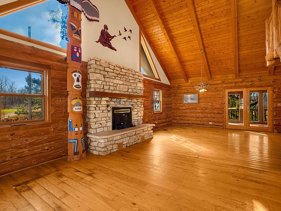 Welcome home to Houston, MN. This Log home is built with all of the things that you and yours would like; space, privacy and accessibility to local towns and city. Built on just over an acre and a half, this custom log home has 4 bedrooms, with one being on the main level, 3 baths and many common areas both inside and out. Enjoy morning coffee on the wrap around porch, or cozy up to one of the fireplaces in the evening. This place has it all. The Loft area can be so many things, common gathering area, or a play area for kids or pets. Lower level has three more bedrooms and access to the outside. If you like to tinker or build things, this garage has a shop, a lean to and still from for 2 large vehicles. And if that wasn't enough space for you there is a large yard with another storage shed. This house has it all and within minutes of downtown La Crosse and La Crescent! Do not let this home pass you by!