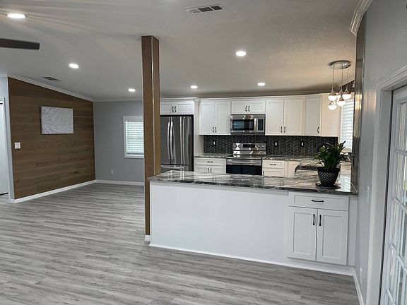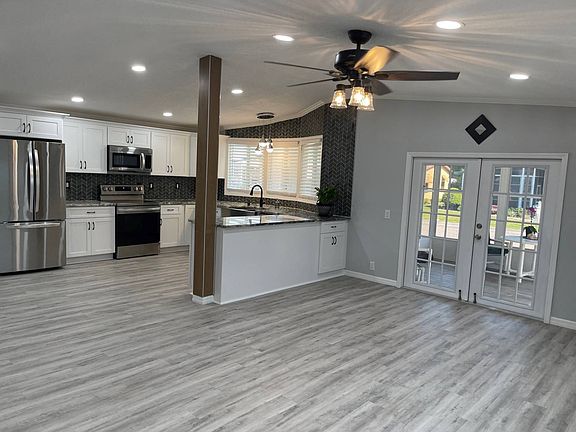 1991 Palm Harbor Homes 2 bedroom 2 Bathroom home with 1232 Sq. Ft of living space. This home has been freshly remodeled with all of the nice things we love in a home. The brand new appliances are stainless steel modern with French door fridge, Microwave, glass top oven, garbage disposal in the farm house sink, tile backsplash in kitchen, guest bath and master bath as well. The floor plan has been changed to the open concept living area making this home feel very large. Kitchen and both bathrooms are brand new with granite throughout, new undermount sinks, toilets, tub or shower with new plumbing and electrical fixtures. The roof is brand new and AC is only a late 2019 install. The home is offered unfurnished giving you a blank slate to work on making it your favorite place to go besides the golf course, pickleball court and grill. it is also offered with golf cart included. This home is situated on leased land. Contact the Sales and Information Center for more details