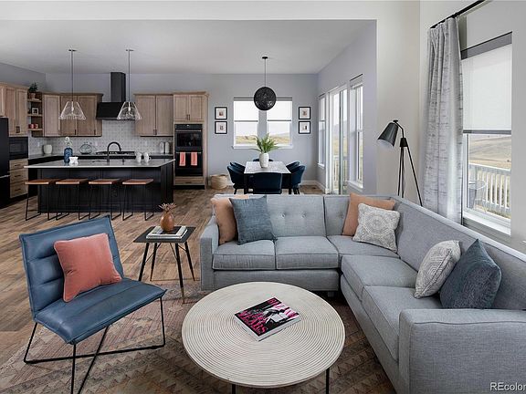 Beautiful patio home model. Tired of mowing and shoveling - this is included in your HOA. So many upgrades - Quartz countertops - luxury vinyl wood floors - upgraded carpet - Rave fireplace - Walk-out basement - taller baseboards - iron railing - Mud-set shower pan - 19 x 8 deck - upgraded plumbing fixtures - custom cabinets - pendant lighting - under cabinet lights - 36" gas cooktop Bring your pickiest buyers. Pool clubhouse and trash included with Metro District - This is your buyer's chance to buy a professionally decorated home in the beautiful Candelas neighborhood.