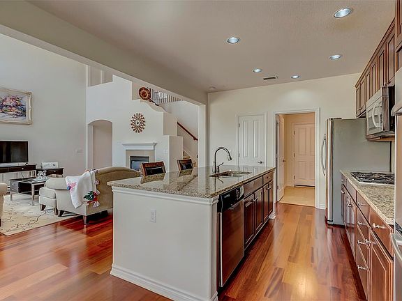 Popular Fresco model Townhome in Tresana, nestled on a premium lot, siding to open space with partial mountain views. Finished as a rare end unit, this home is incredibly light and bright. The main floor boasts of pre-finished cherry floors & window coverings throughout. The gourmet kitchen, w/ cherry cabinets, gas cooktop, whirlpool SS appliances, slab granite island & counter tops adjoins the spacious family room with 2 story ceilings in this open floor plan. Enjoy the formal dining space or dine on the spacious patio, complete w/ gas hookup. The open staircase to the upper level is complete w/ wrought iron spindles & flows into the loft which could be your office, play area or 3rd Bedroom. Fabulous upper level master w/ 5 piece bath, spacious walk-in closet & private deck while the guestroom is conveniently located down the hall adjacent to a full bath. Location location! Just steps away from community pool, walking paths, grocery stores, restaurants, fitness & array of retail .