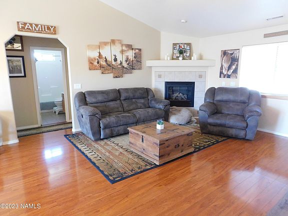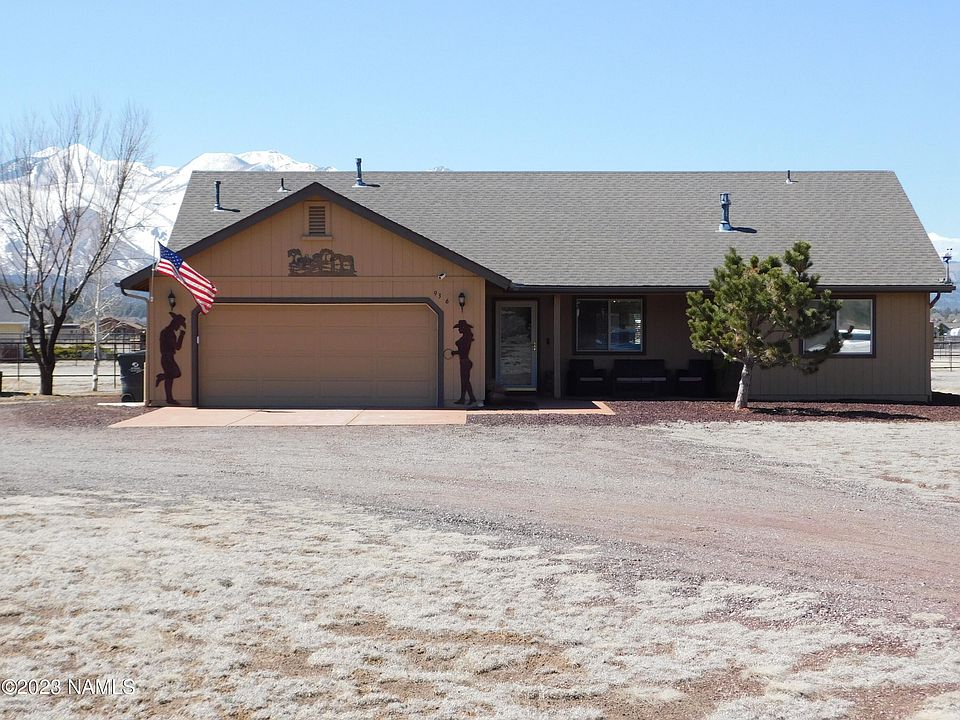 Spectacular Property with a View! This 3 bedroom, 2 bath, single level home sits on 2.5 acres and boasts amazing views of the San Francisco Peaks and Mount Elden. This property is perfect and ready for horses as the horse fencing borders a large area of the property along with direct access to riding and hiking trails. The open floor concept is perfect for entertaining with vaulted ceilings, and beautiful double doors leading out to a covered patio offering endless opportunities! The property has an underground rainwater collection tank that holds up to 8000 gallons. The washer, dryer and refrigerator are included in the sale. This property won't last long!