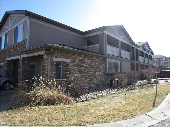 Welcome! This beautiful home has an open floor plan with 3 bedrooms, 2 bathrooms and over 1500 square feet of living space. Park in the two-car garage which has direct access to the home. Once inside you will find a great room with a fireplace and vaulted ceilings. Just beyond the great room is a very large, covered balcony with retractable shades. Great for entertaining or just relaxing. The kitchen has 42-inch maple cabinets, granite countertops, a pantry and a kitchen island with seating. All kitchen appliances are included. Next to the kitchen is the dining room. Down the hall are two bedrooms and a full bath. Bedrooms could also be used as a home office or workout area. At the end of the hall is the primary bedroom with a large ensuite bathroom. The 5-piece bathroom has dual sinks, a large walk-in shower, large soaking tub and don't forget the large walk-in closet with lots of storage. The full-size washer and dryer are included. The community has a pool, firepit area and lots of open space. The metropolitan district has a pool, tennis courts, pickleball courts, community center, gym, trails, and open space. Easy access to E470, DIA, DTC, shopping and restaurants. Close to Trader Joes and In and Out Burger coming soon.