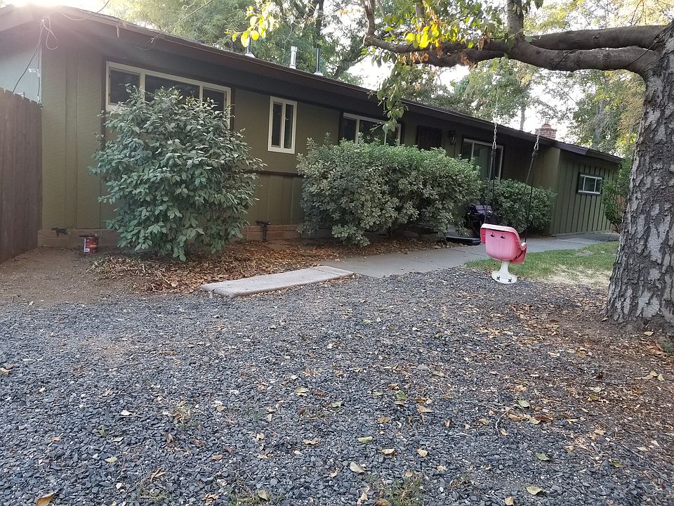 BEAUTIFUL 3 BEDROOM, 2 BATHROOM HOME ON LARGE CORNER LOT. has a large yard with citrus trees, peaches, nectarines and beautiful flowers through out. There is also a sunny location for a large garden. Separate living and family rooms, plus large oversized laundry room and tons of storage. Detached garage 28x22 currently set up for work out studio, easy to convert back though. Fully fenced. plus large oversized laundry room
