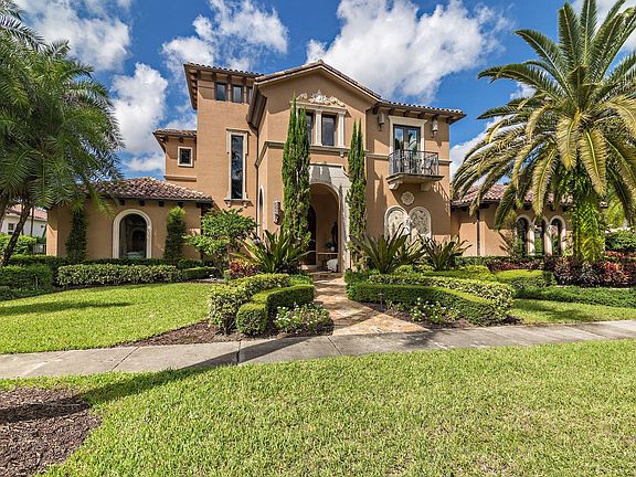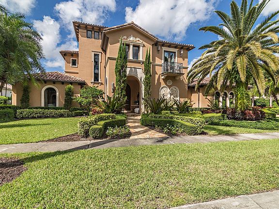 Located in the Grand Estates section of the Oaks of Boca Raton, featuring oversized lots and custom designed homes, this immaculate, lakefront estate has approximately 8000 total square feet with 5 bedrooms, 6 full and 2 half baths, plus 8 seat theatre, and club room. Enter the 2-story formal living room overlooking the sun splashed pool, spa and patio. Next to the living room is a club room (or home office) and a graciously sized formal dining room. A dramatic home theater seats 8 comfortably. The lavish master bedroom has his and hers separate bathrooms located on the first level. The European style chef's kitchen features beautiful river rock countertops, custom wood cabinetry, hammered copper farmers sink and top of the line appliances which overlooks the oversized family