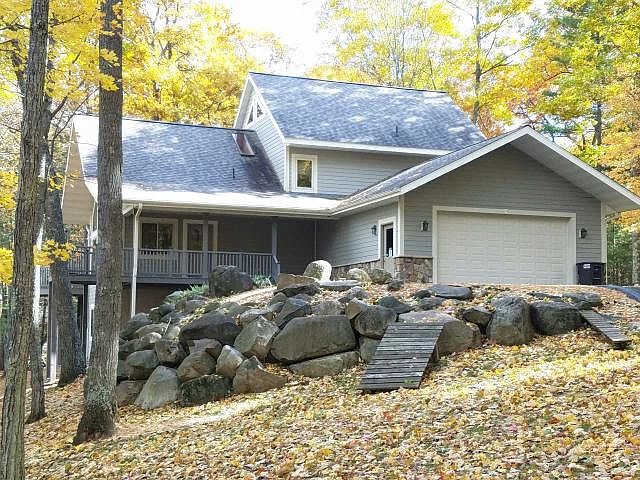 We Really Love This House! Curb appeal like nobody's business, this house will impress from the moment you drive up. 229' on pristine 68 acre Miller Lake, a clear water, excellent fishing & kayaking lake! Immaculate 3BR, 3BA chalet was built in 2007 & features an open-concept living room & kitchen w/huge windows facing the lake, beautiful hardwood floors & tile, main floor Master Suite w/att full bath & walk-in closet, full guest bath, huge laundry/mud room & an attached 2 car insulated/heated garage. The upper level has a spacious loft, full bath and 2 nice sized bedrooms. Lower level walkout is ready to be finished and features tall ceilings, plumbing for a bathroom & french patio doors to the lakeside. Nature Lovers will love the portion of ftg that is lakebed/wetland and attracts ducks, blue herons & more. Walk out to a point where the pier is and enjoy sand swimming and the most beautiful, serene spot to sit. Northwoods, at its best..