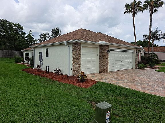 One or more photo(s) has been virtually staged. Del Webb Spruce Creek Golf & CC is a wonderful 55+ Community with so much to offer--pools including indoor, fitness center, walking trail, tennis, golf, restaurant, club house, etc.! It is a true gated community!!! Conveniently located near shopping, restaurants, doctors offices and The Villages Spanish Springs Town Square. This 3/2 very popular Elkridge model is located in the Tamarron subdivision. Notice the pavered driveway and retractable screened garage. Enter into the open floor plan. Large 24" Tile thru out great room. Lanai floor raised and glass windows! There is no carpet anywhere. It is clean, bright and well maintained. There are solar tubes in the kitchen area and guest bathroom. There are granite counters and a tile backsplash in the kitchen. Gunmetal gray stainless steel appliances finish the look. The kitchen drawers have rollouts. The master bath has been redone with a stunning walk in shower. There is a California closet in the master as well as enhanced shelving in the front bedroom. The ceiling fans have all been updated. The lanai is enclosed, finished and open to great room and there is that much desired rear privacy. Golf cart garage, and Pantry under heat and air! Pavers provide a nice outdoor seating area. The garage door has been insulated. You'll want to see this one!!