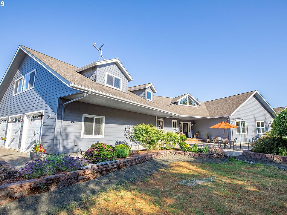 "TOP OF THE WORLD" Custom 5100 sf Spectacular View (Coos Bay/Coos River/Ocean) Home on 3.66 Private Acres!! 9 Bdrm, 7.5 baths, Formal Living RM, Formal Dining, New Quartz Counters, Cook Island & Breakfast Bar, Family/Media RM, Master Suite w/Workout RM, Bonus RM/Game RM/4th Bdrm, 1040sf 3car Garage, Green House, Garden Area, Trex Deck, Paved, RV Parking & MUCH MORE!! MUST SEE VIDEO/VIRTUAL TOUR LINK!! NO DRIVE-BYS PLEASE!!
