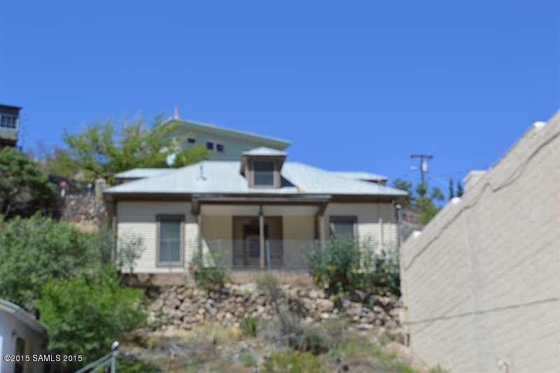 This 4 bedroom, 2 bath is very unique by Old Bisbee standards - it is a large, two story modified Sears kit home on two lots overlooking Main Street. The rooms are large with 9 1/2 foot ceilings. The whole house has windows galore so it is very bright with a remodeled kitchen and baths (1992). Sure there are 63 steps and no parking But you are right in the Heart of Old Bisbee! A bath and two bedrooms (including the master) downstairs and the same upstairs. The upstairs bedrooms are not square boxes either but have lots of character in shape with dormer windows. Walking through the great front door with a lovely stained glass piece into the large foyer, the bedrooms are on the left and the great room of living room, dining room and kitchen are on the right. Outside you have two lo