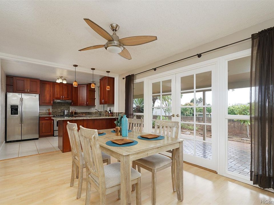 Fall in love with this spacious & private cul-de-sac home in the desirable Mililani neighborhood ("All American City"). Enjoy the peace & quiet that comes with the location, featuring a full size 2 car garage/workshop, 2 large master suites, and 2 spacious covered lanai areas ideal for hosting parties and entertaining guests. You'll love the french doors in master bed & dining room along with french handles on doors and faucets throughout the house. Granite countertops featured in kitchen and baths. Lots of natural light along with high ceilings add to the spaciousness. Extra bonus room at the back of the house serves as an office space, theater room, or man cave. Gardeners will love the yard space on the side & back of property. Includes bidets in all bathrooms & window A/C in all rooms.